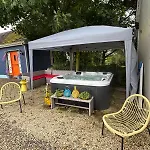 Lime Cottage comes with a bathroom with a hot tub, a separate toilet, and a shower.